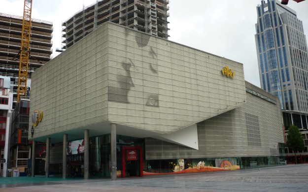 Bij oplevering in 1996 de grootste bioscoop van Nederland is een technisch hoogstandje. Een vederlicht gebouw op een bestaande parkeergarage. Herman Kerkdijk noemt dat in 1997 het “zwevende karakter”. Laten we zeggen dat het gebouw inmiddels is geland. Met een nieuwe huid kan het er weer jaren tegen. Een bioscoop mag best om de 15 jaar een nieuw beeld oproepen. En Rotterdam mag weer door bouwen.