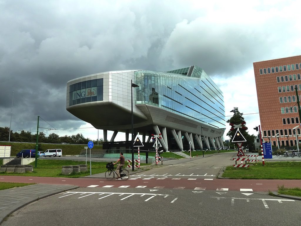 Het ING House is met de rustgevende binnentuinen een verzetje in het stressvolle bankiersbestaan. Of verzekeraars moet ik zeggen want tegenwoordig is de verzekeringstak gevestigd achter de dubbele glasgevels die het geluid, de kou en desnoods de warmte buitenhouden. Het is één van de weinige kantoorgebouwen aan de Zuidas dat geen enkele poging doet op een toren te lijken. Dat zou meer navolging verdienen. Horizontaal denken past veel beter bij de Nederlandse cultuur. Juist de banken hebben dat de afgelopen jaren aan den lijve ondervonden.