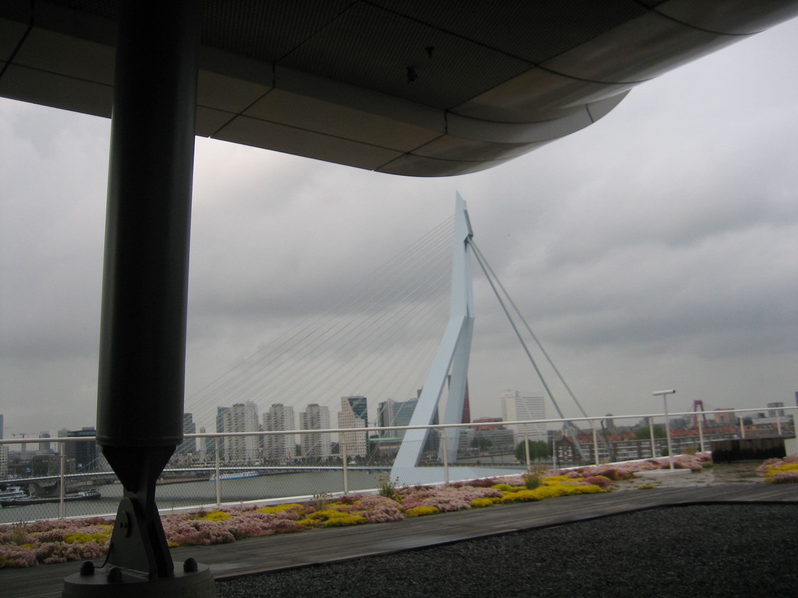 Ingehuldigd met grootse feesten. Direct gevolgd door een enorme domper. Bij wind en regen onder een bepaalde hoek trilde de tuiconstructie als de snaren van een harp. Het brugdek bewoog nauwelijks maar Rotterdammers zagen het gevaarte al in het water van de Nieuwe Maas storten. De gloednieuwe brug tussen nieuw Rotterdam en de nog nieuwere Kop van Zuid ging voor onbepaalde tijd dicht.