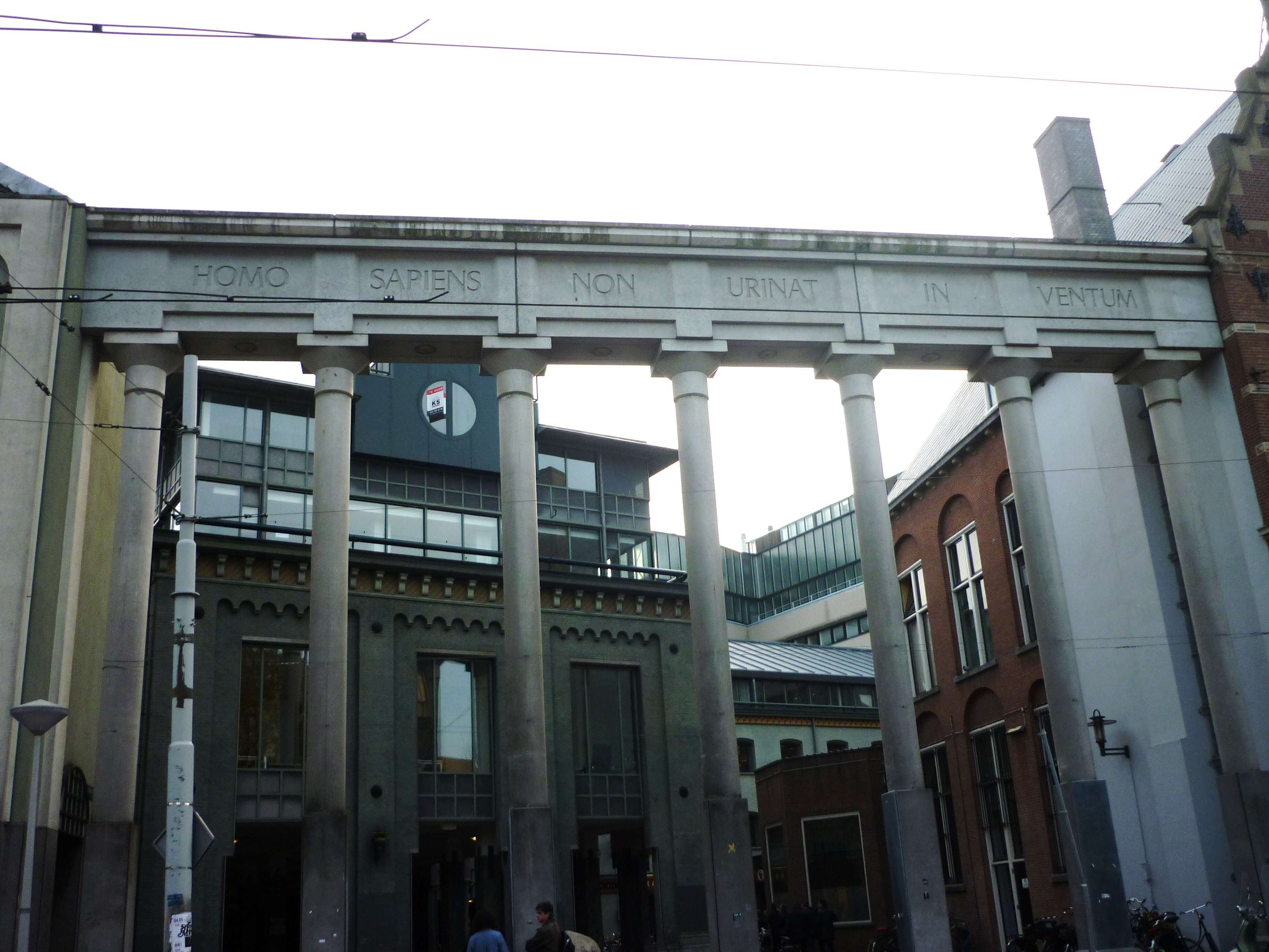 Alleen door met de wind mee te waaien is het gelukt de route tussen Leidseplein en Vondelpark te ontsluiten. Het oude huis van bewaring is opgevrolijkt met postmoderne tierelantijnen. In de oksel van de oudbouw het Casino. De ingang is enigszins verborgen voor het grote publiek. Aan het water toont het zich in volle glorie. Ter compensatie voor deze geldmachine is direct aan het plein een braaf blok sociale woningbouw gekomen. Het geheel ademt teveel compromissen om de stroom voorbijgangers te laten stoppen. Weinig fietsers die langs het plein slingeren of toeristen die een weg zoeken naar het Museumplein nemen rekenschap van de moeite die de ontwerpers hebben gedaan dit gat te dichten. De inscriptie op de triomfpoort naar het Leidseplein is hun ultieme revanche.